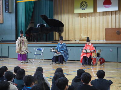 1月28日(水)、体育館で6年生の音楽鑑賞会が行われました。今回は雅楽を鑑賞させていただきました。6年生全員、そのすばらしい音色に聞きほれていました。雅楽について教えて下さった皆様、本当にありがとうございました。