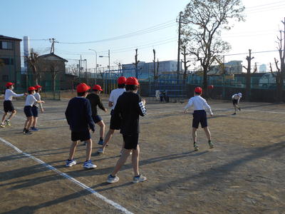 今日は、ドッチボールをしました。6年生が、4年生にボールを譲る優しい姿が見られました。また、上手にボールをかわしたり、狙いを定めて投げたり、みんな楽しく活動していました。