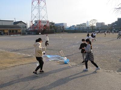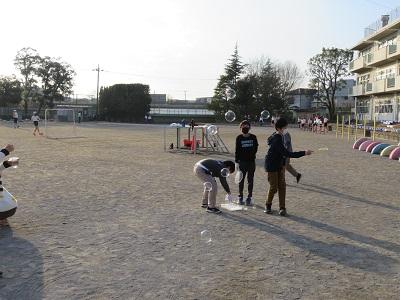 たくさんの大きなシャボン玉が風に乗って遠くまで飛んでいきました。