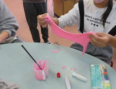 絵の具やラメを混ぜて、きれいなスライムが出来上がりました。