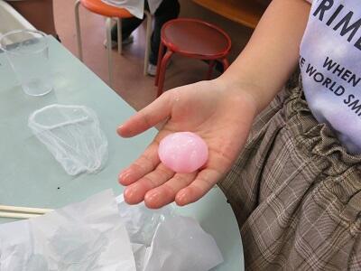 飽和食塩水を混ぜると、なんとスーパーボールになります。