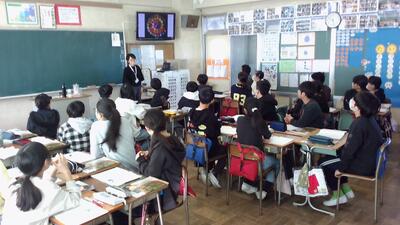 6年生 八幡木中学校出前授業 投稿: 中居小学校 (02/02) 1月22日に八幡木中学校の先生が来校し、出前授業を行いました。 中学校についての質問をしたり、学習内容に触れたりすることができました。 -