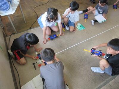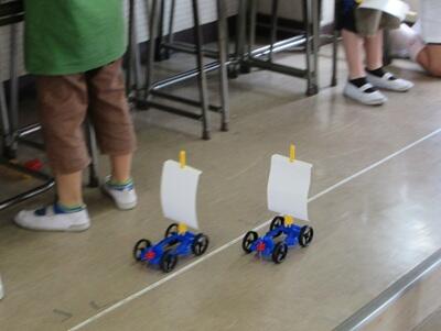 「ゴムをのばすと、車が遠くまで走ったよ!」