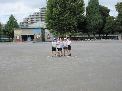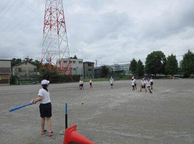 少しでも気温が低めの日や時間を見つけて、体育に取り組んでいます。